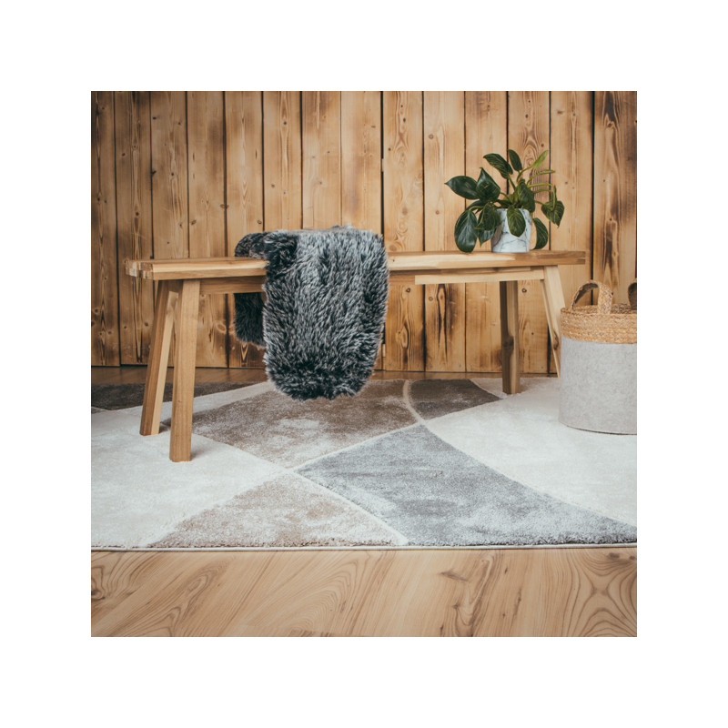 Koberec elegantně kombinující odstíny hnědé, béžové a šedé barvy se stane centrálním prvkem každého interiéru. Jeho design se vyznačuje 3D efektem, který přinese do místnosti pocit hloubky a dynamiky. Je vyroben z prvotřídních materiálů, a proto koberec nejen zlepší estetiku prostoru, ale také zaručuje dlouhou životnost a snadnou údržbu.