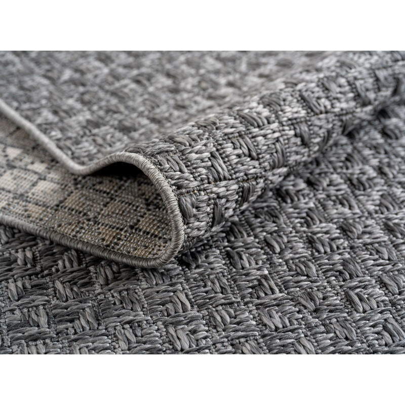 Kruhový koberec v černo-bílém barevném provedení, který se může pyšnit zajímavým vzorem. Je obšitý po celém obvodu a má antistatickou úpravu. Jedná se o bezvlasý koberec, který má místo klasického vlasu krátké smyčky. Ty jsou odolné a snadno udržitelné. Skvělá volba do obýváku i na terasu.