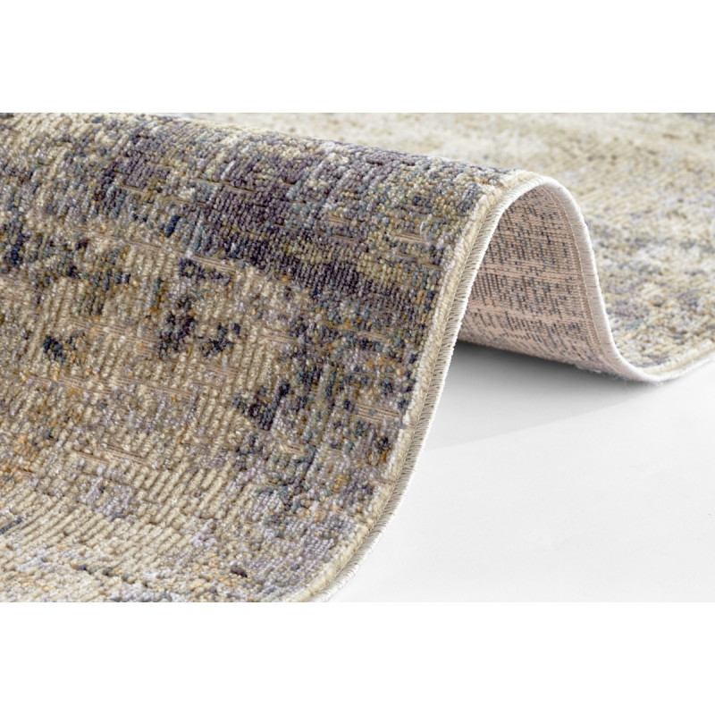 Koberec Laos 454 je béžový s hnědými abstraktními vzory. Je vhodný do jakéhokoliv interiéru. Nevadí mu dlouhodobé zatížení nábytkem.