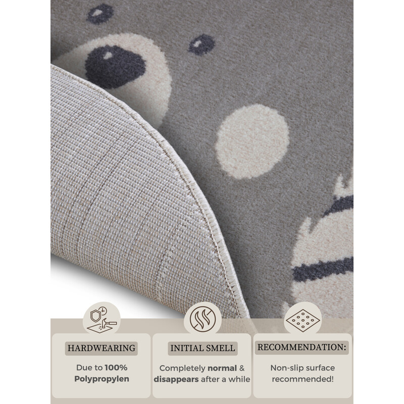 Krémově bílý kruhový koberec s šedým medvídkem je ideálním doplňkem do dětského pokoje, který vnese do prostoru klid a roztomilost. Měkoučký koberec ze 100% polypropylenového vlákna je velmi příjemný na dotek a díky středně vysokému střiženému vlasu poskytuje pohodlí při hraní. Je obšitý po celém obvodu, což zajišťuje jeho odolnost. Antistatická úprava...