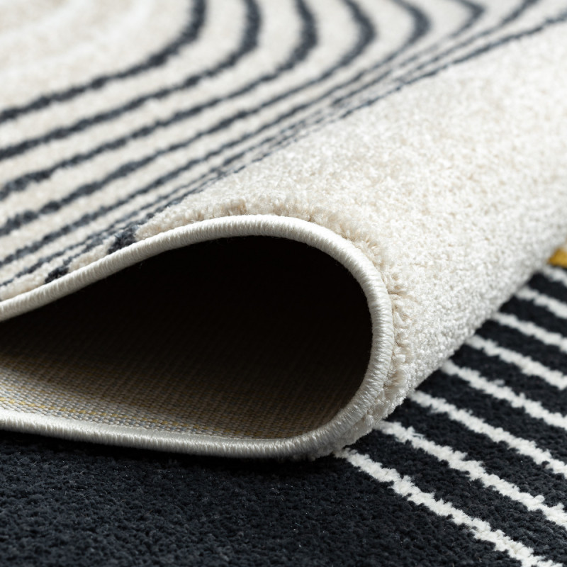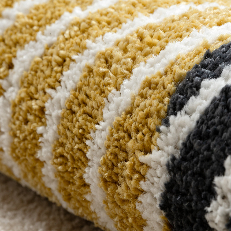 Žluto-bílý koberec s šipkami a malými kosočtverci, který z každé strany vypadá jinak. Na jedné straně totiž dominuje žlutá, zatímco na druhé bílá barva. Tento oboustranný kousek je velmi praktický, protože ho můžete položit nejen doma, ale i v exteriéru. Místo klasického vlasu má velmi krátké smyčky, a proto je odolný a snadný na údržbu pomocí vysavače...
