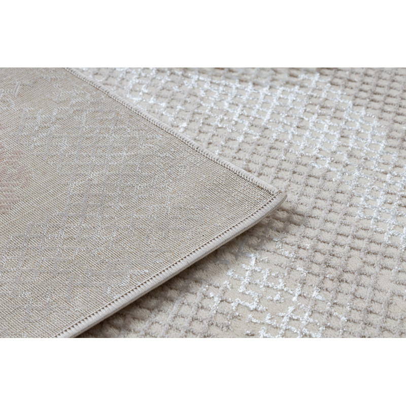 Koberec Core s ornamentem v béžové barvě. Koberec vytvoří stylový prvek v obývacím pokojí, v předsíní nebo v kanceláři. Příjemný pocit při chůzi na boso a dotyk propůjčuje vyhotovení vlasu ve dvou výškách a použití syntetických materiálů polypropylen a polyester. Tyto materiály jsou vhodné pro alergiky. Koberec můžete položit na podlahové vytápění.