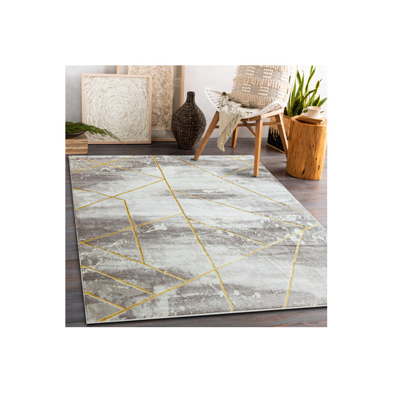 Koberec Core 1818 přináší do interiéru geometrické prvky v abstraktním chaosu v šedo zlatým provedení. Tento koberec vytvoří velmi zajímavý středobod místnosti. Díky použitému materiálu je velmi příjemný na dotyk, který oceníte při chůzi na boso. Koberec je vyrobený ze syntetického materiálu a vlas je zastřižený do dvou výšek. Tento materiál je vhodný pro...