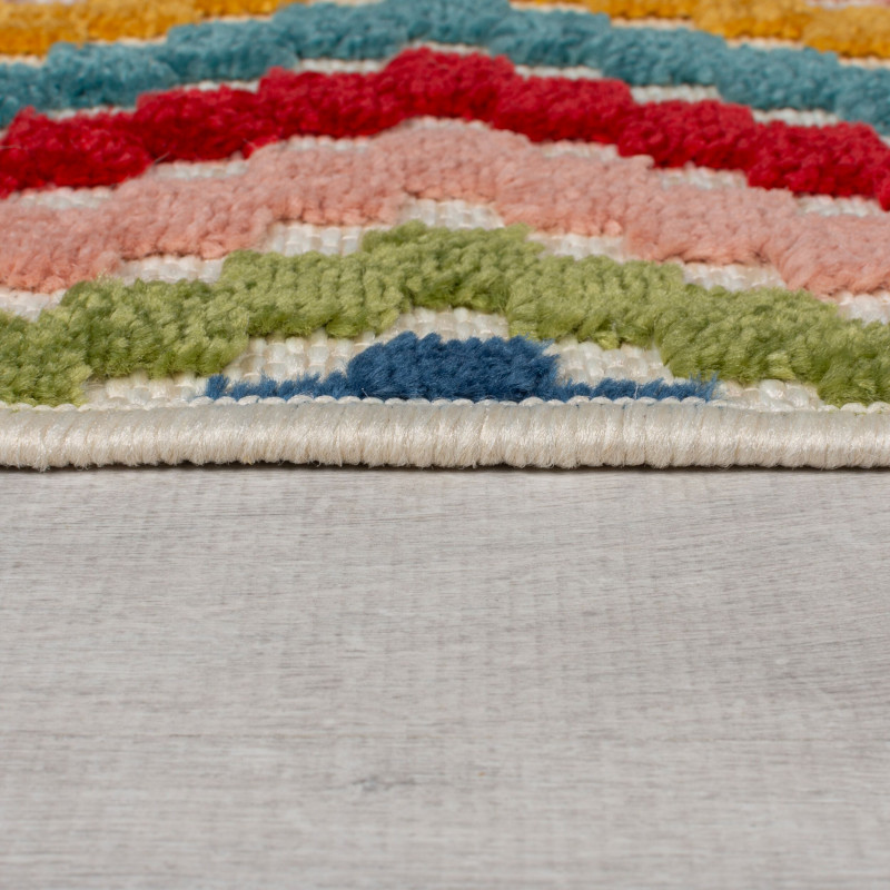 Nápaditý běhoun posetý různobarevnými trojúhelníky či šipkami. Je vyroben ze 100% vlny, která skvěle izoluje chlad, tlumí hluk a dokáže regulovat vlhkost v místnosti. Vaši pozornost si jistě získá i díky výraznému plastickému efektu, jelikož má různě dlouhá vlákna. Tento originální ručně střižený koberec bude ozdobou každé domácnosti.