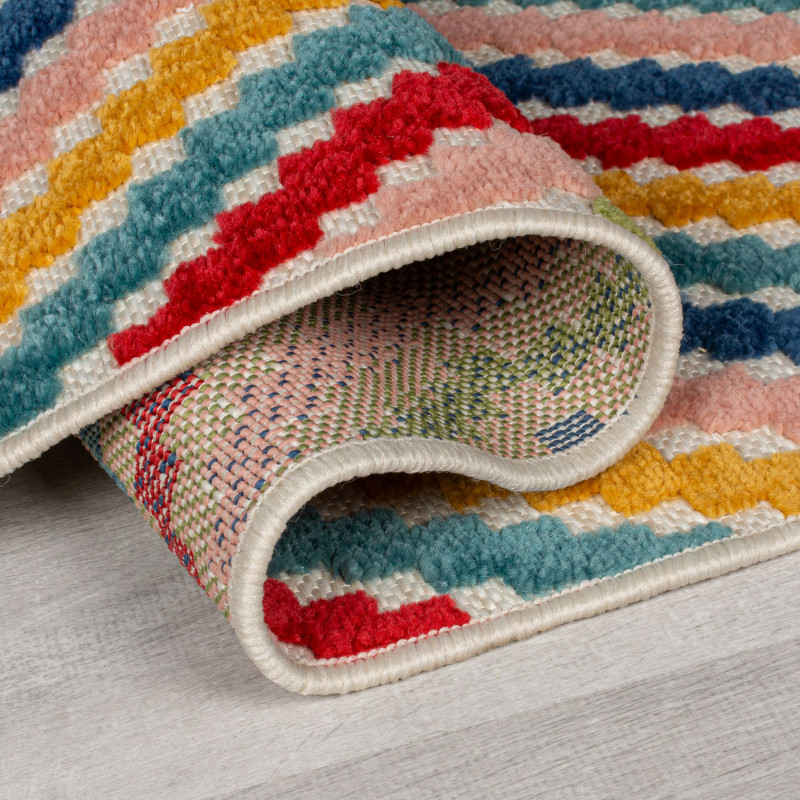 Různobarevný běhoun s fantastickým vzorem s orientálním nádechem, který je navíc plastický. To zajišťuje kombinace velmi krátkých smyček a střiženého vlasu z polypropylenu. Díky nízkému profilu ho můžete položit i pod nábytek, ať už se jedná o konferenční stolek v obývacím pokoji nebo ratanové křeslo na terase.