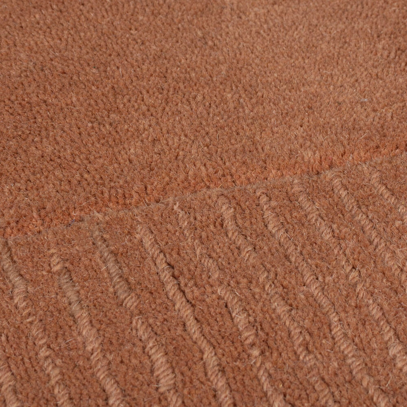 Moderní koberec v hřejivé oranžové barvě dodá příjemnou atmosféru každé domácnosti, ať už se rozhodnete položit ho do ložnice k posteli nebo do obývacího pokoje k pohovce. Tam se nejlépe hodí, protože je měkký, komfortní na došlap a hřejivý. To vše zajišťuje středně vysoký střižený vlas z přírodní vlny.