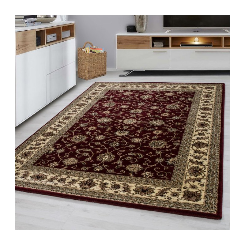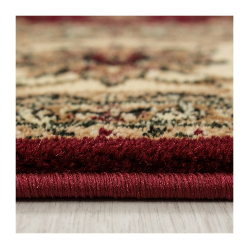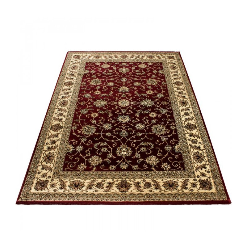 Kusový koberec Marrakesh 210 red s úžasným orientálním designem v červeno-zlatých barvách. Výška vlasu 12 mm a vyšší hustota z něho dělají ideální koberec do kterékoliv místnosti, snadný na údržbu. Díky použité technologii Heatset je také velmi příjemný na dotyk a odolný vůči vyšisování a poškození.