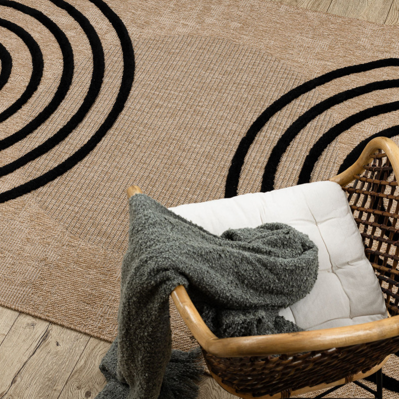 koberec Spark 0688 beige/black na sebe strhne pozornost svým moderním geometrickým vzorem, dvojicí půlkruhových oblouků v černé barvě, které na béžovém podkladu vytvářejí silný kontrast a stylový efekt. Díky jednoduché, ale výrazné kresbě se hodí do interiérů, kde chcete dodat šmrnc a originální charakter. Je vyroben z polypropylenu se soft střiženým...