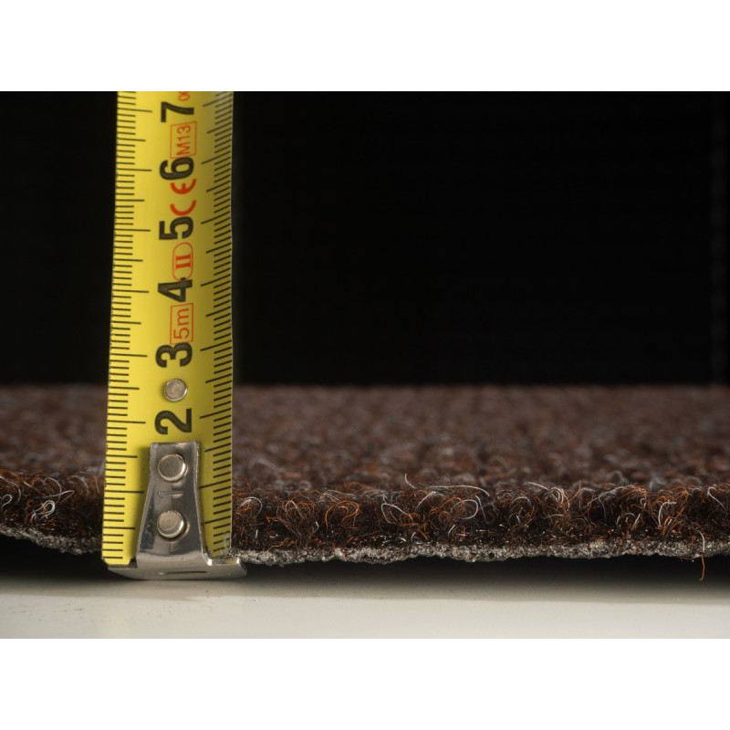 Hnědý metrážový koberec Fortuna 7830 má praktickou tmavou barvu, která skryje nečistoty. Hodí se proto i do zatěžovaných komerčních interiérů. Vyznačuje se vysokou odolností, jelikož je vyroben z pevného polyamidu a má krátký střížený vlas. Ten je zároveň snadný na údržbu.