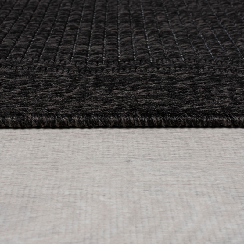 Praktický koberec v barvě uhlí najde uplatnění doma i v exteriéru. Tmavá barva skryje nečistoty, což oceníte například v předsíni, kuchyni nebo na terase. Díky velmi krátkým smyčkám z polypropylenu je pevný, odolný a snadný na údržbu i čištění. Můžete ho nejen vysávat, ale i omývat vodou.