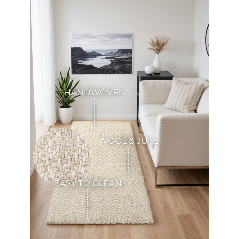 Ručně tkaný běhoun Majoli z kolekce Elle Decoration v krémově bílé barvě přináší do interiéru skandinávský klid a přírodní eleganci. Kombinace vlny a juty zajišťuje měkkost, odolnost i nadčasový vzhled, který snadno zapadne do každého stylu bydlení.