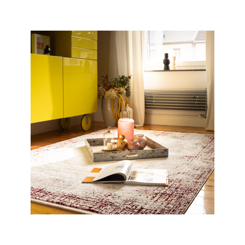 Koberec Andre Frame 1684 má velmi zajímavé oranžovo-červené ornamenty. Má velmi nízký střižený vlas. Jedná se o koberec s velmi jednoduchou údržbou. Pro čištění lze využít praní při teplotě nepřesahující 30°C. Spodní strana je opatřena protiskluzovou gumou, která zajišťuje neklouzání koberce po podlaze. Hodí se i do prostor s podlahovým vytápěním....
