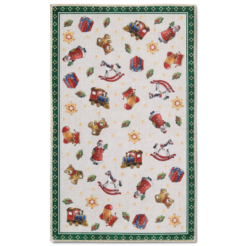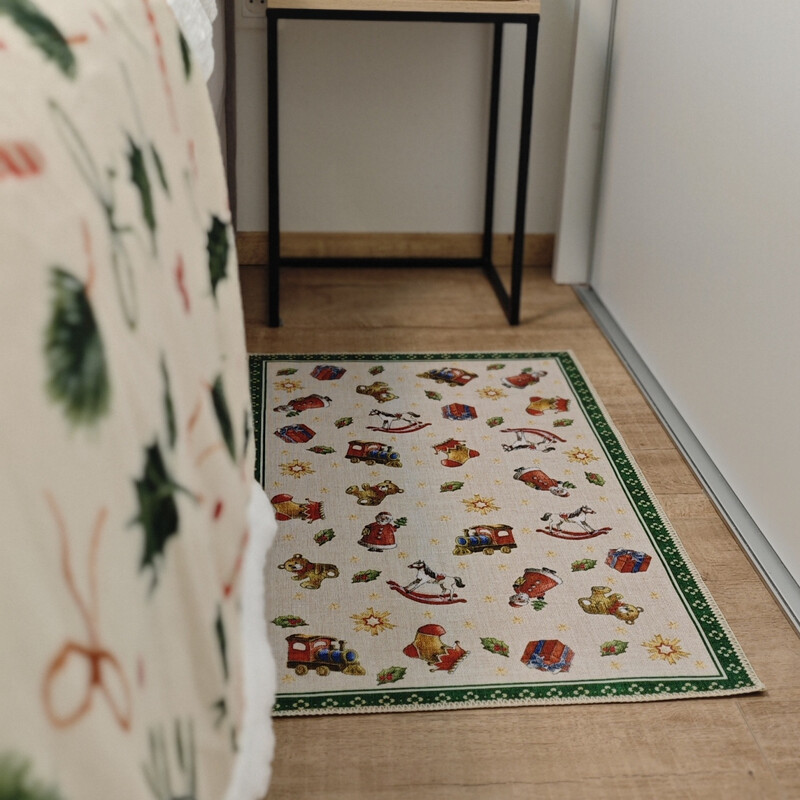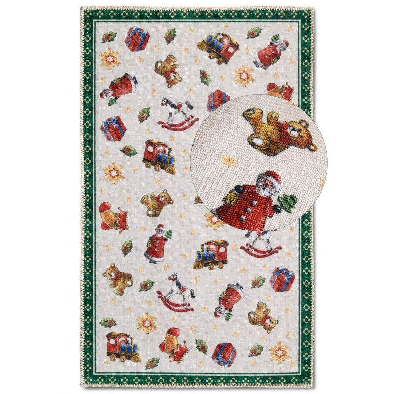 Představte si, jak tento koberec přinese do vašeho domova kouzlo Vánoc s kapkou nostalgie. Na jemně béžovém podkladu se rozprostírají hravé vánoční motivy, které vás v myšlenkách přenesou do pohádkových svátků. Okraje v olivově zeleném tónu zdůrazňují jeho půvab a dodávají mu špetku elegance. Díky protiskluzové úpravě a příjemné výšce je ideální nejen pro...