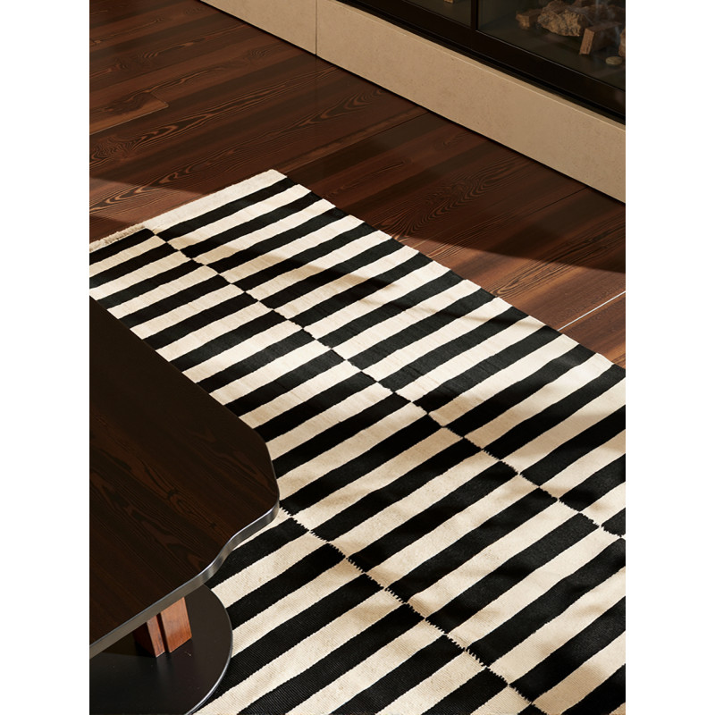 Černo-bílý koberec potvrzuje pravidlo, že v jednoduchosti je krása. Na druhou stranu je ale potřeba říct, že tento koberec vůbec není nudný nebo nenápadný. A pokud by se Vám snad stalo, že byste si ho okoukali, není nic jednoduššího než koberec otočit a užívat si jeho inverzní motiv. Další výhodou pak je, že ho můžete přenášet mezi jednotlivými místnostmi...