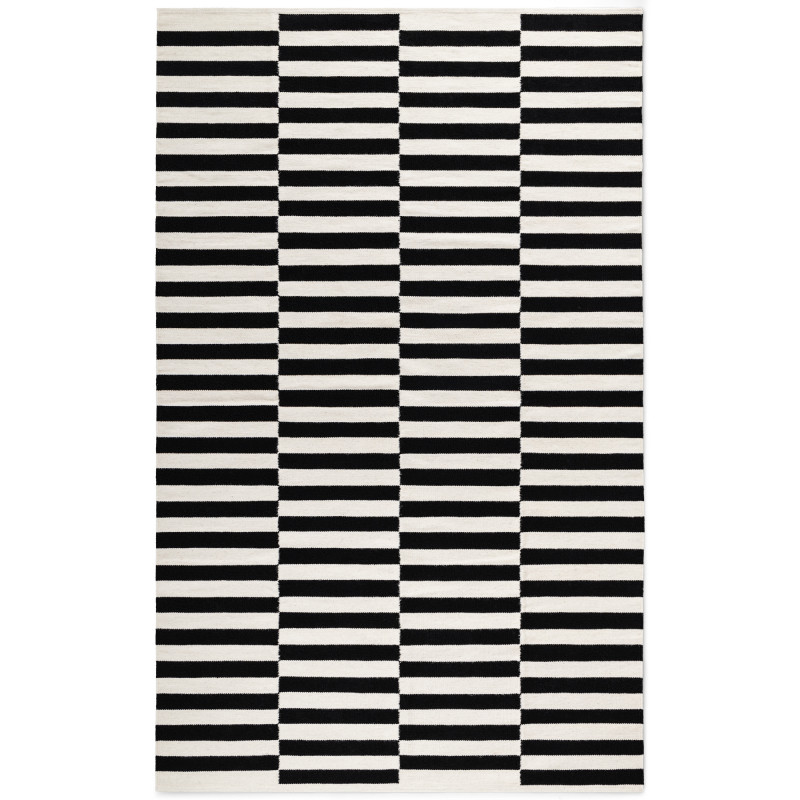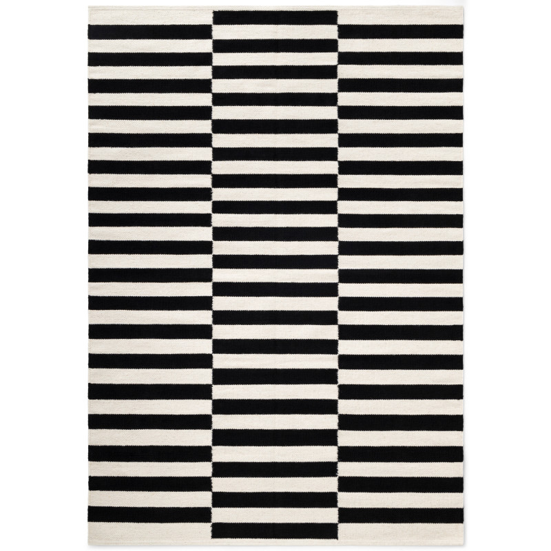 Obdélníkový koberec Duet v kontrastní kombinaci černé a bílé potěší nejen vzhledem, ale i svou univerzálností – hodí se do obýváku, ložnice, pracovny i na terasu. Díky odolnému materiálu zvládne každodenní provoz doma i venku a přitom neztratí na eleganci.