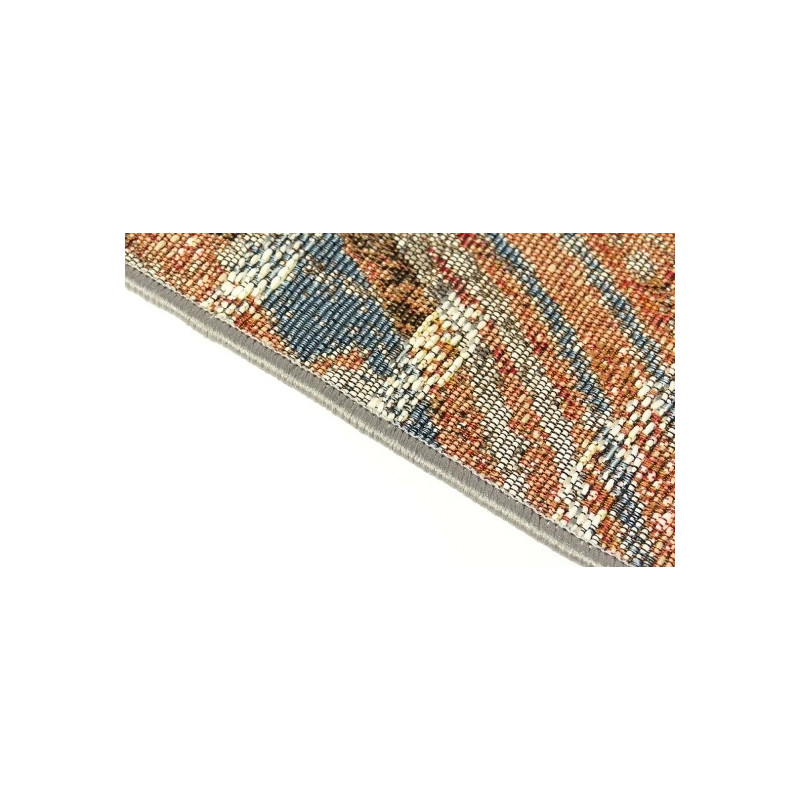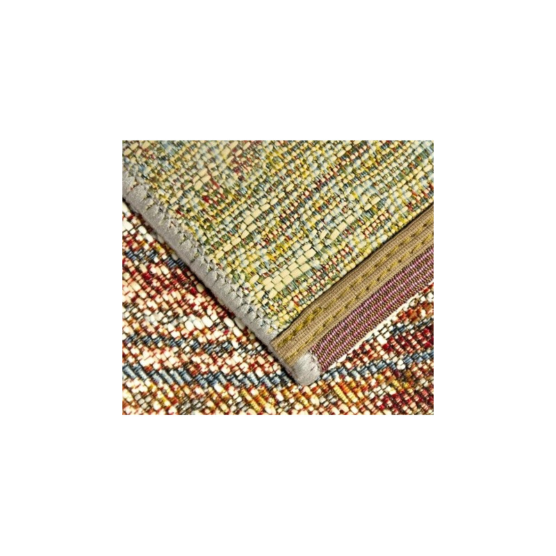 Vícebarevný orientální koberec ve vintage stylu má zdobný středový medailon. Po obvodu má krémově bílé lemování, díky kterému se netřepí okraje. Koberec se vyrábí z polypropylenu a má středně vysoký střižený vlas. Proto je měkký a příjemný na dotek.