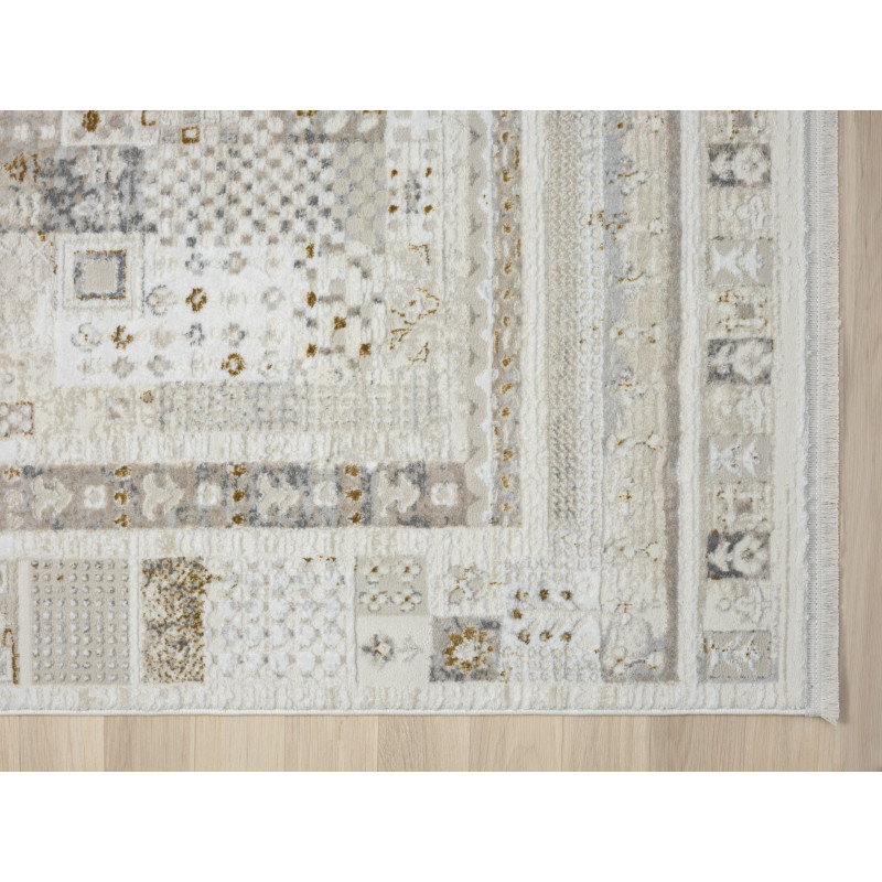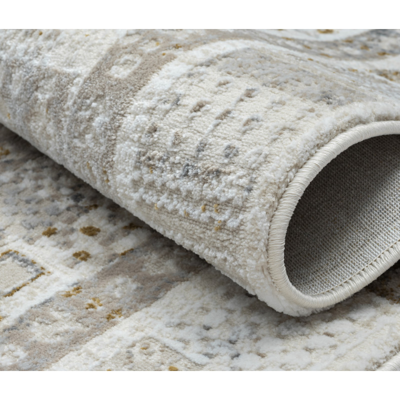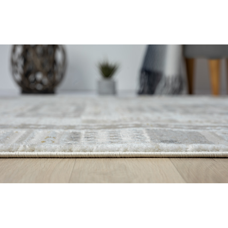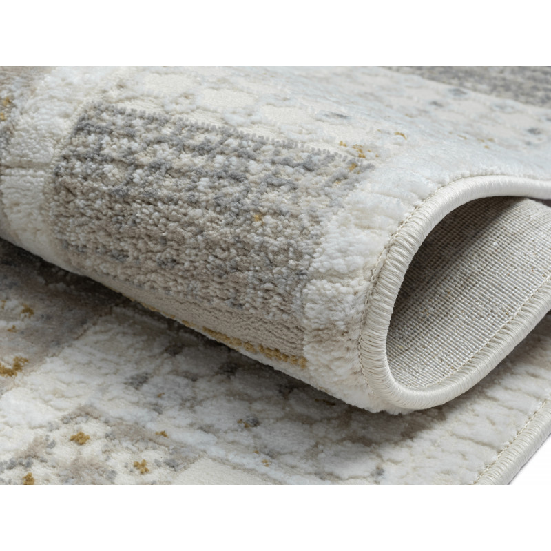 Béžový koberec s poutavým 3D vzorem díky své neutrální barvě skvěle doplní každý interiér. Nejlépe se hodí do obývacího pokoje k pohovce nebo do ložnice k posteli, protože je příjemný na došlap, izoluje chlad a tlumí hluk. To zajišťuje středně vysoký hustý vlas z přírodní vlny.