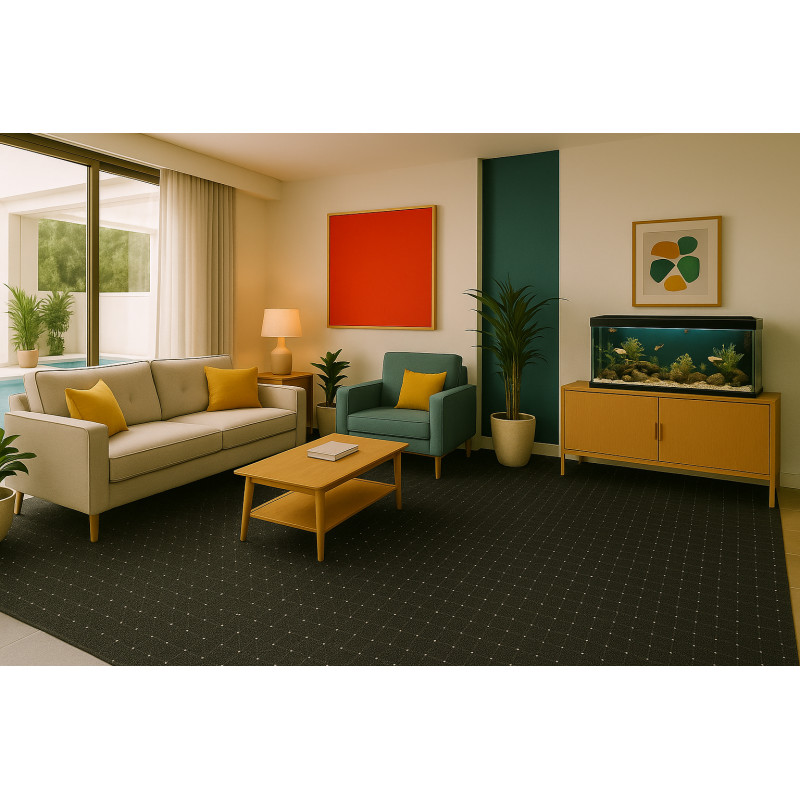 Metrážový koberec Wembley je jedinečný travní koberec v černé barvě s bílošedými vlákny. Má vpichovaný nízký vlas, který mu propůjčuje jednoduchou údržbu a čištění pomocí vysavače, což se ve venkovním prostředí velmi hodí. Uplatnění nalezne nejen venku, ale též ve vnitřních prostorech. Pro snadný odvod vody z koberce slouží nopy na spodní straně. Jsou to...