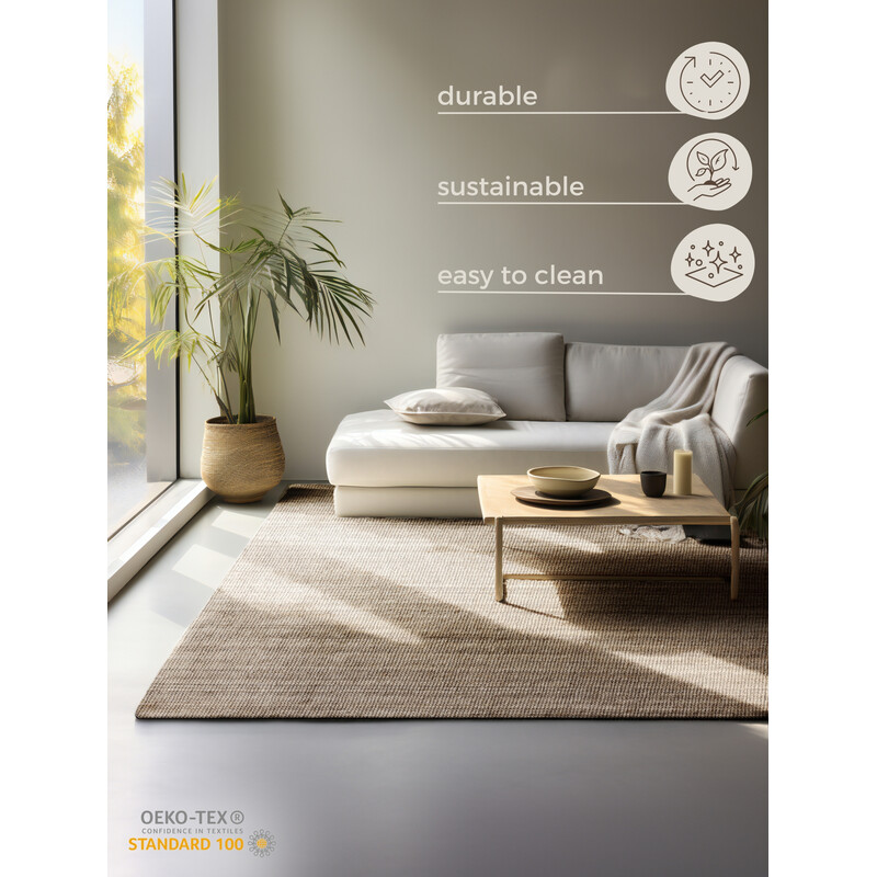 Kolekce koberců Bouclé Jute od značky Hanse Home spojuje přírodní materiály, moderní design a praktičnost v každém detailu. Tyto koberce jsou vyrobeny z kvalitní juty, což jim dodává jedinečný přírodní vzhled a zajišťuje vysokou odolnost. Díky absenci klasického vlasu a jejich bouclé struktuře jsou nenáročné na údržbu a ideální pro každodenní použití. Koberce jsou navrženy tak, aby zapadly do různých částí domova – skvěle se hodí do obývacího pokoje, ložnice nebo chodby, kde vytvoří útulnou a přirozenou atmosféru. Jsou zároveň kompatibilní s podlahovým vytápěním, což oceníte zejména během chladnějších měsíců. Důraz na kvalitu a udržitelnost dokládá certifikát OEKO-TEX, který garantuje, že koberce jsou vyrobeny bez použití škodlivých látek a jsou šetrné k životnímu prostředí. Kolekce Bouclé Jute kombinuje nadčasový vzhled s funkčností, což z ní činí ideální volbu pro ty, kteří hledají elegantní a praktický doplněk do svého interiéru.