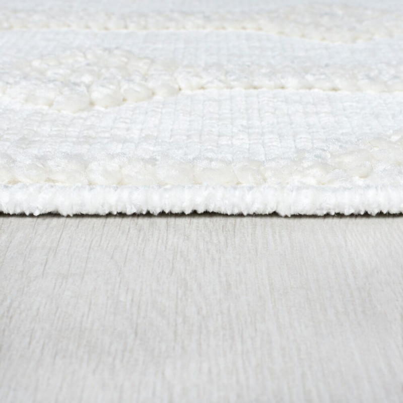 Krémově bílý běhoun vyrobený ze směsi odolného polypropylenu a měkké polyesterové žinylky. Jistě Vás zaujme hned na první pohled svým atraktivním plastickým motivem. Mezi jeho přednosti patří komfortní došlap, odolnost vůči UV záření nebo antistatická úprava. Tyto vlastnosti nejlépe oceníte v ložnici či obývacím pokoji.