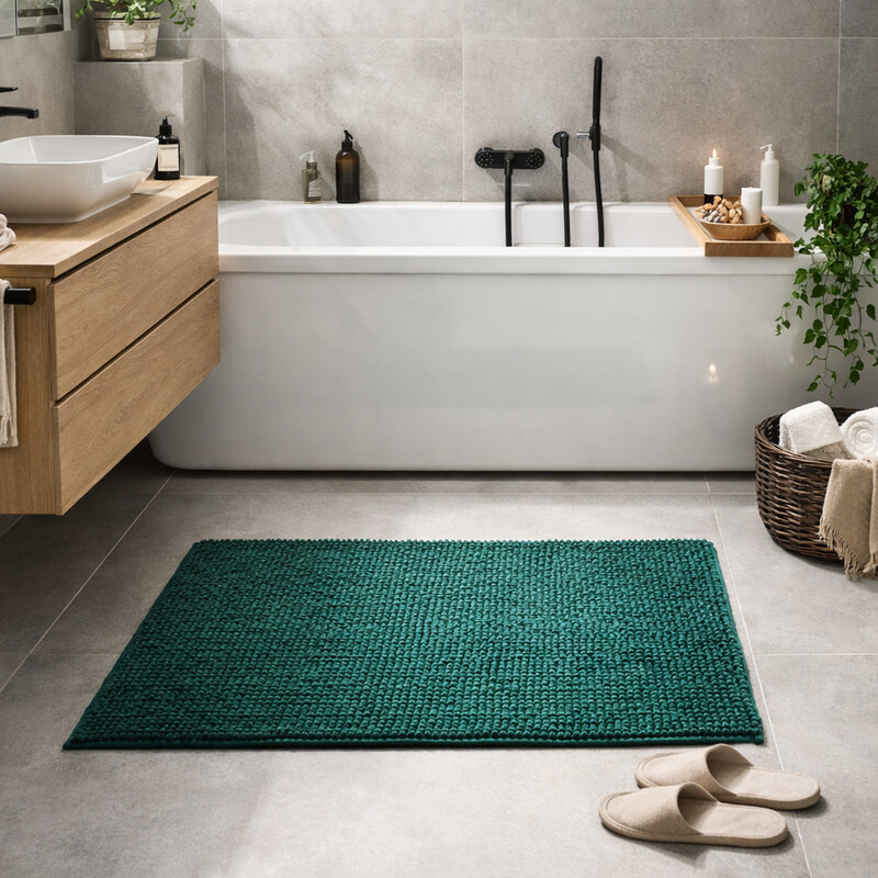 Koupelnová předložka Chenille Velvet v zelené barvě přináší do koupelny svěží nádech a příjemné pohodlí při každém kroku. Je vyrobená z polyesteru a její typická žinylková struktura tvoří měkký, hustý povrch, který je hebký na dotek a zároveň dobře saje vlhkost. Díky jemným vláknům působí předložka nadýchaně a útulně, takže po sprše nebo koupeli dopřeje...