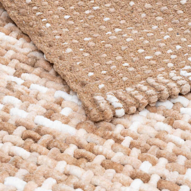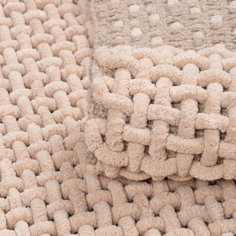 Koupelnová předložka Belweder v béžové barvě zaujme na první pohled svou originální strukturou připomínající ruční háčkování. Nemá klasický kobercový vlas, její povrch tvoří spletená silnější vlákna, která vytvářejí zajímavý vzhled a zároveň příjemně měkký došlap. Je vyrobená z kombinace polyesteru a bavlny, takže působí hebce, přirozeně a útulně. Skvěle...