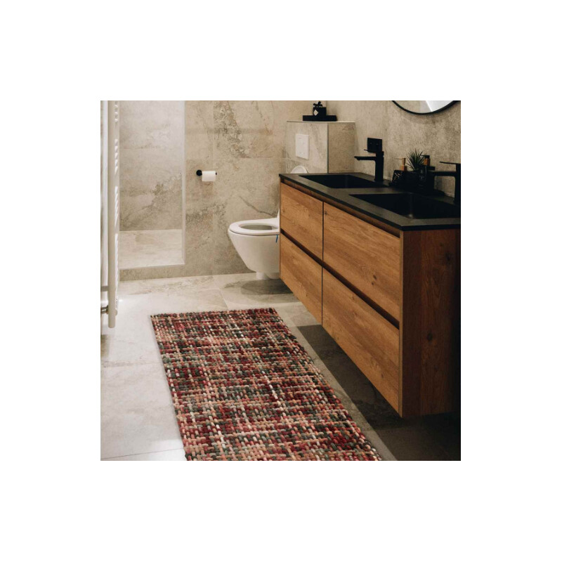 Stylová melírovaná koupelnová předložka Belweder v odstínech červené, oranžové a šedé. Nemá klasický kobercový vlas, její povrch tvoří spletená silnější vlákna, která vytvářejí zajímavý vzhled a zároveň příjemně měkký došlap. Je vyrobená z kombinace polyesteru a bavlny, takže působí hebce, přirozeně a útulně. Skvěle doplní koupelnu v přírodním, boho i...