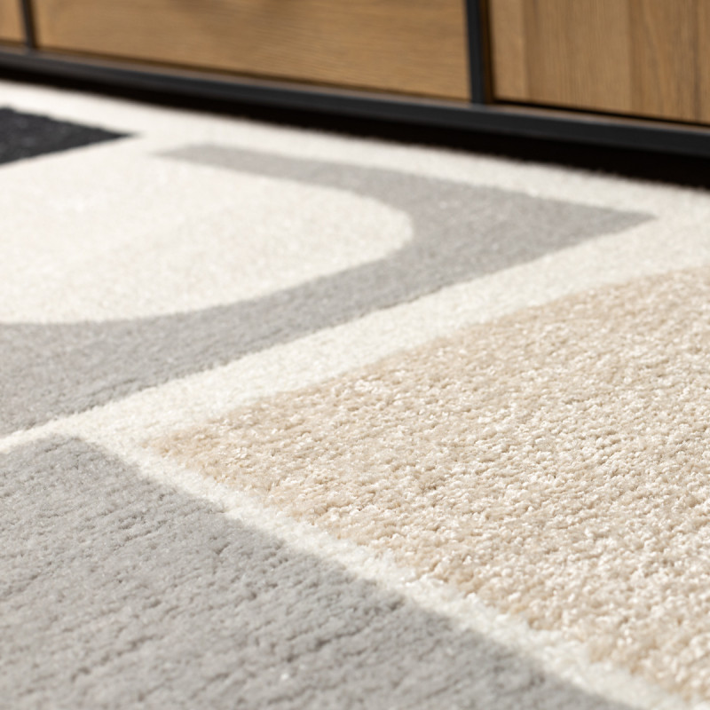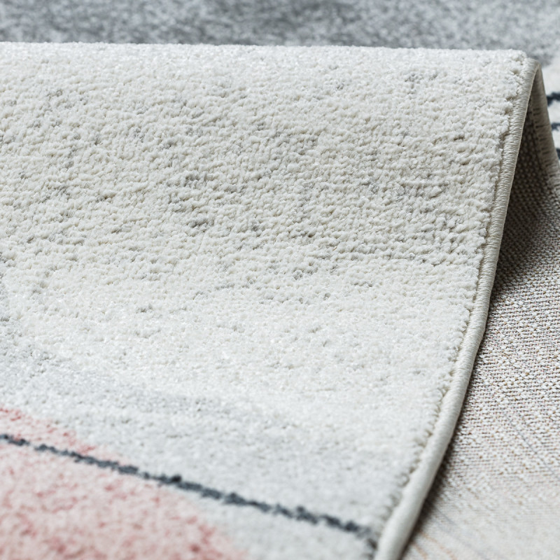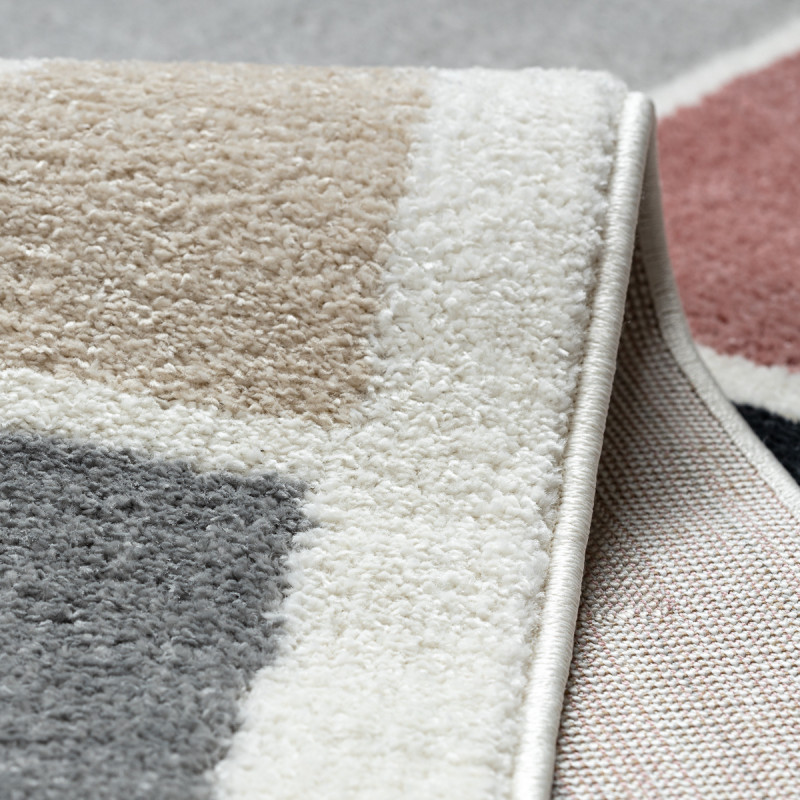 Koberec Fusion 0213 je jako moderní obraz pro vaši podlahu. Hrátky s tvary a barvami, krémová, šedá, béžová, růžová a černá, vytvářejí hravou abstrakci, která se skvěle hodí do interiéru s charakterem. Hustý střižený vlas z polypropylenu Soft je neuvěřitelně jemný a příjemný na dotek, takže se po něm budete rádi procházet naboso. Výška vlasu 10 mm a více...