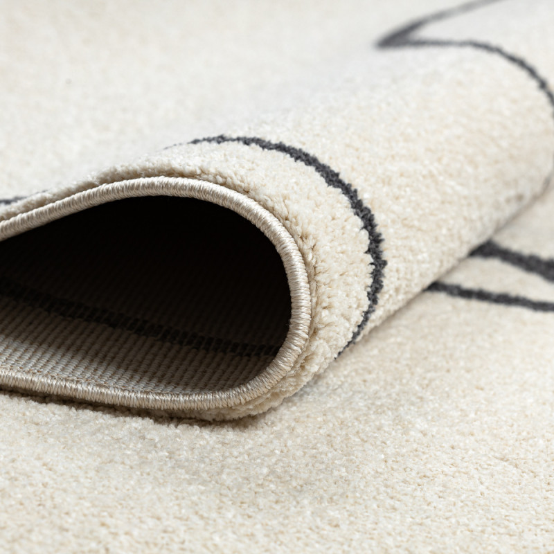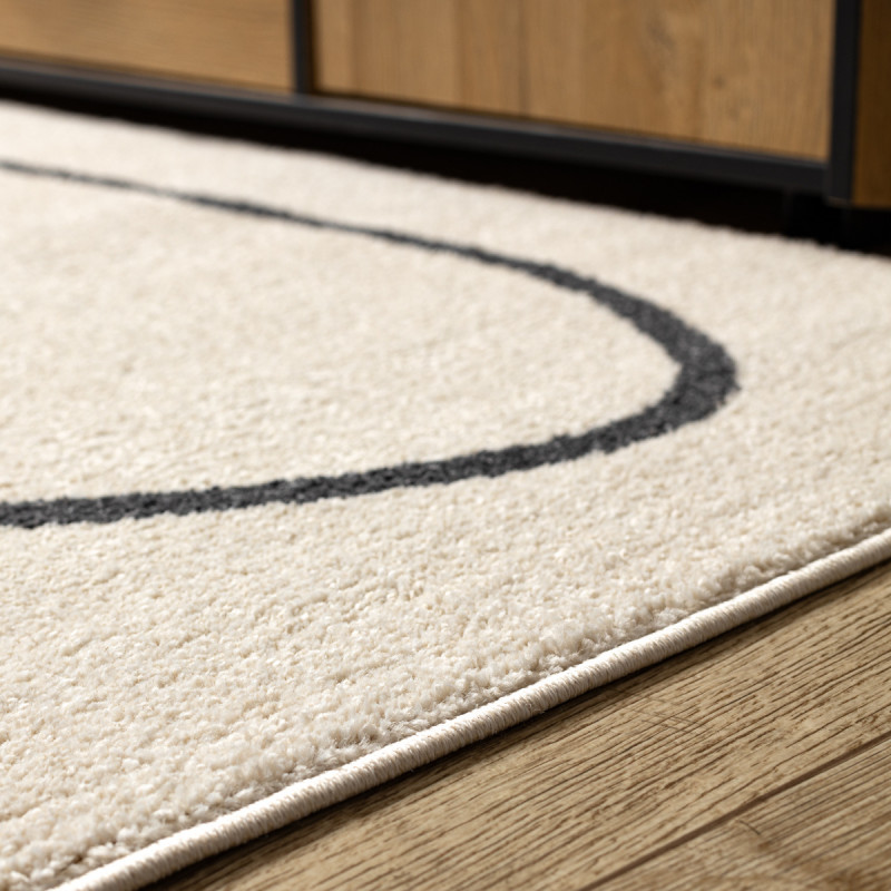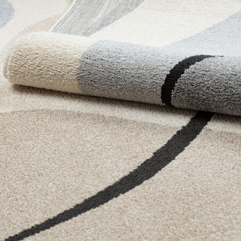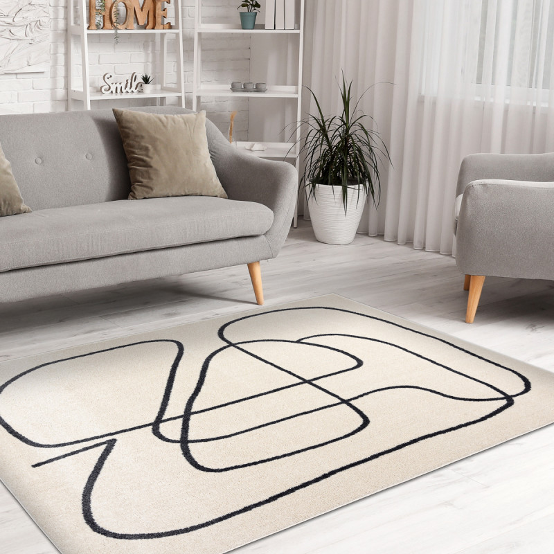 Koberec na první pohled zaujme svou jednoduchou, a přesto výraznou estetikou. Krémově světlý podklad působí čistě a jemně, zatímco černá abstraktní linie, která se volně klikatí po celé ploše, dodává koberci moderní a umělecký charakter. Díky střiženému polypropylenovému vlasu je povrch hebký a příjemný na dotek, zároveň snadno udržovatelný a odolný vůči...