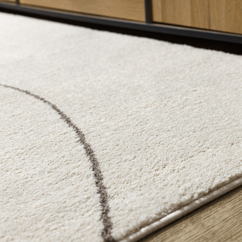 Koberec Fusion 0808 cream/light beige je jako obraz moderního umění. Jemně krémový podklad zdobí decentní hnědý ovál a černé linie, které působí jako minimalistická kresba, jednoduchá, ale s hlubokým dojmem. Díky hustému vlasu ze 100% polypropylenu Soft je koberec mimořádně příjemný na dotek i na bosou chůzi. Skvěle se hodí do ložnice, obývacího pokoje...