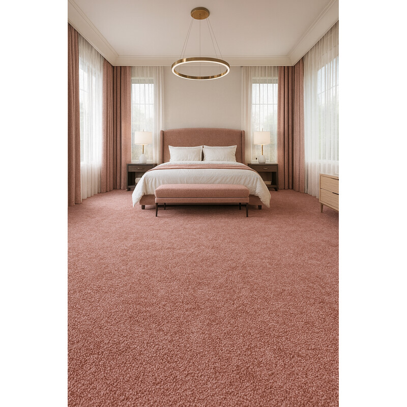 Moderní metrážový koberec z kolekce Sweet růžový navodí velmi elegantní a luxusní atmosféru u vás doma. Struktura koberce tvoří střižený vlas, který je vzájemně kroucený, to propůjčuje koberci měkkost, hebkost na dotek a díky jeho hustotě a filcovému podkladu, snižuje kročejový hluk. Tyto vlastnosti nejvíce využijete v ložnici nebo v pokojích. Koberec je...