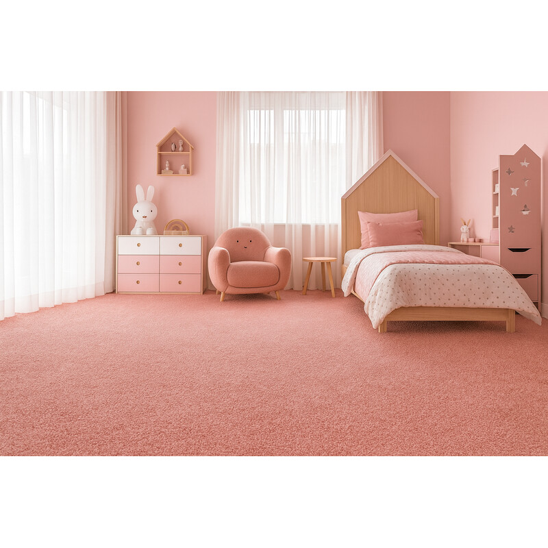 Nádherný metrážový koberec z kolekce Dynasty v dívčí růžové barvě. Tento bytový koberec se střiženým vlasem (saxon) má filcový podklad a hodí se na podlahové vytápění. Koberec je vhodný do středně namáhaných bytových prostor. Díky růžové barvě ho můžete použít jak do obývacího pokoje, tak třeba do dívčího pokojíčku.