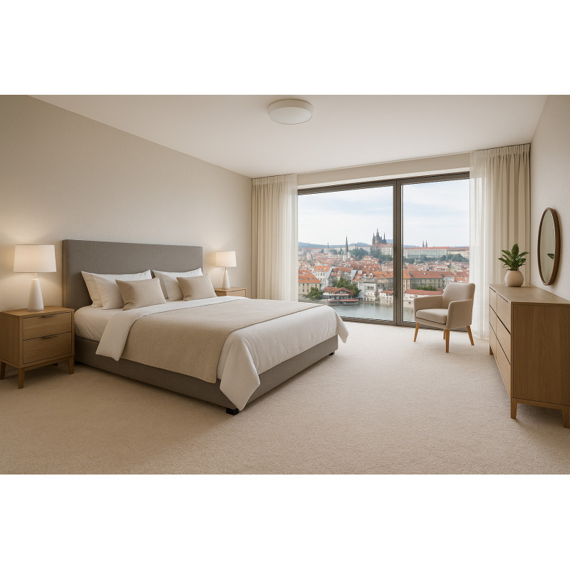 Metrážový koberec Serena v krémové barvě vnese do domácnosti světlo a eleganci. Příjemným střižený vlas je vyrobený z jemného polyamidu a vykouzlí příjemný pocit na dotek bosou nohou. Díky neutrální barvě a lehce melírované barvě s tmavšími tóny se koberec hodí do jakékoliv domácnosti. Spodní strana je opatřena filcem, který nejen snižuje kročejový hluk,...