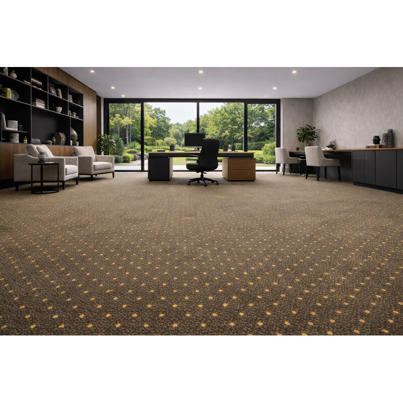 Metrážový koberec v hnědé barvě s puntíkatým vzorem. Akzento New je odolný, kvalitně zpracovaný a patří mezi elegantní zátěžové koberce. Díky tomu má velmi všestranné použití v celé domácnosti, ale též i do komerčních prostor jako jsou hotelové pokoje nebo kanceláře. Kvalitní zpracovaní a nízký střižený vlas zajistí stálost, odolnost, jednoduchou údržbu a...