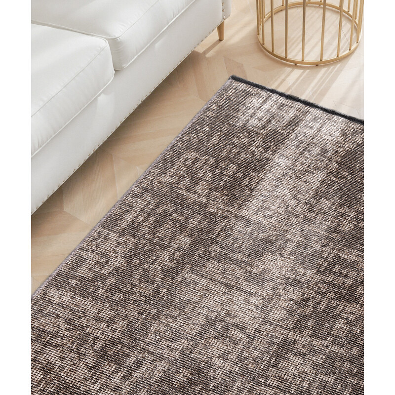 Hnědý koberec s jemným béžovým nádechem působí jako měkký obláček, který se usadil přímo na podlaze. Jeho povrch s nízkým střiženým vlasem vytváří drobný mozaikový efekt, který se rozzáří při každém světelném záblesku. Na kratších stranách ho ozdobně rámují třásně, které mu dodávají veselou náladu, zatímco delší strany jsou úhledně obšité pro dokonale...