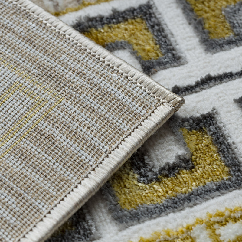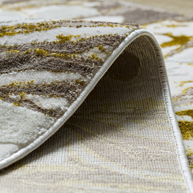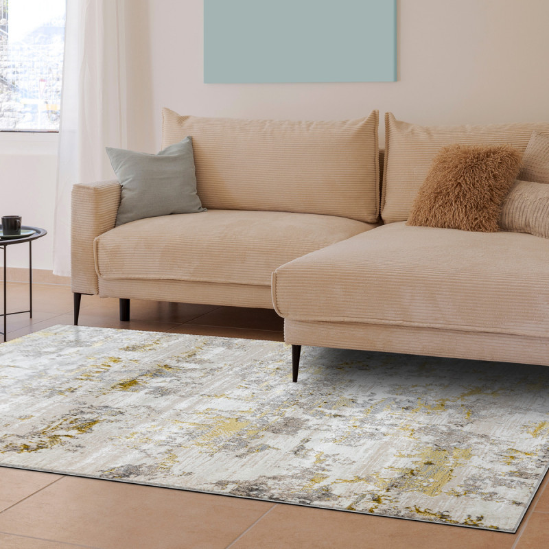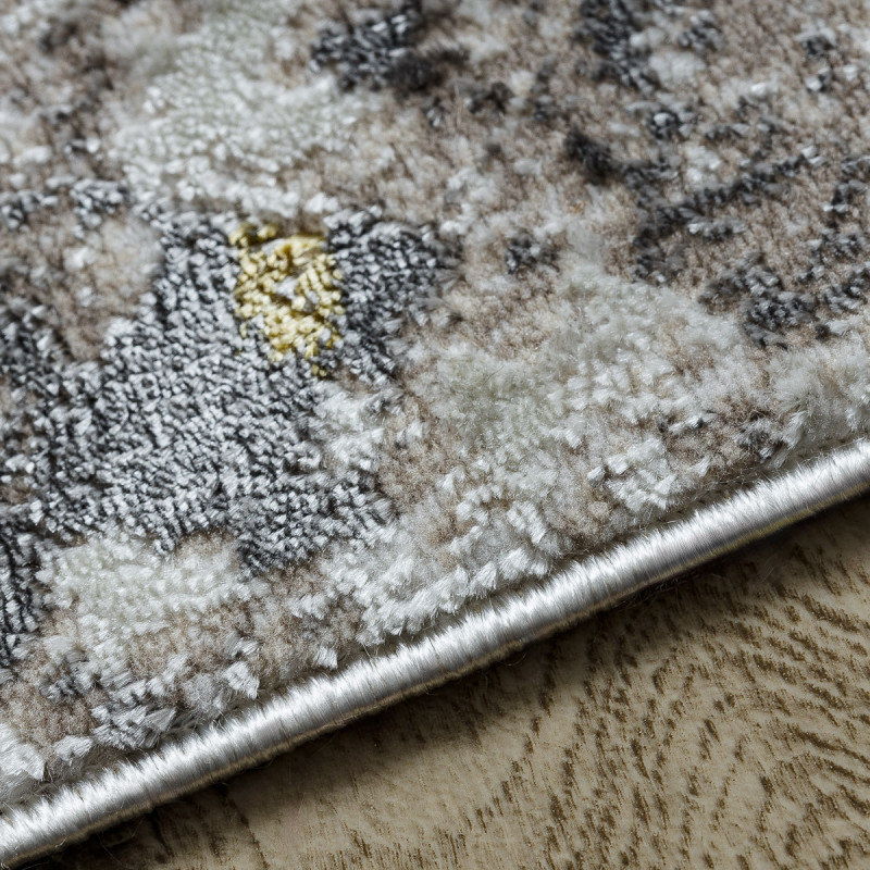 Velmi pěkný kusový koberec z kolekce Zara ve žluto šedé barvě. Koberec má zajímavý abstraktní vzhled a dozdobí každý interiér. Hodit se bude jak do obývacího pokoje, tak ložnice. Vyrobený je ze směsi polypropylenu a polyesteru. Navíc je koberec ze všech stran obšitý.