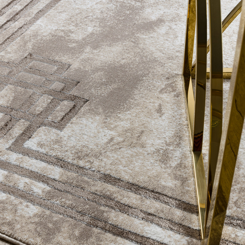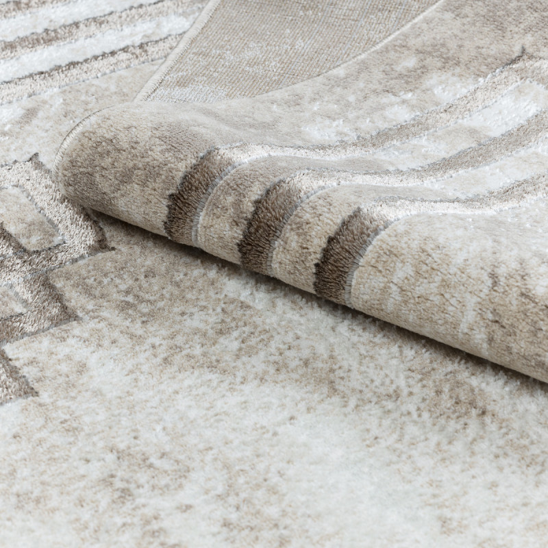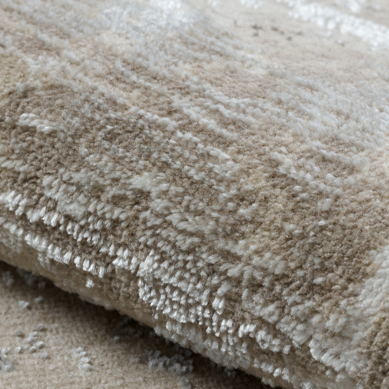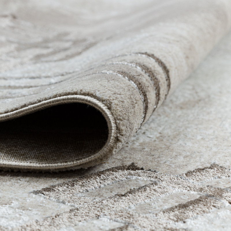 Moderní koberec s geometrickým motivem kombinuje různé odstíny béžové barvy. Jeho předností je měkký a příjemný povrch díky středně vysokému střiženému vlasu. Koberec je zdravotně nezávadný, což potvrzuje OEKO-TEX certifikát.