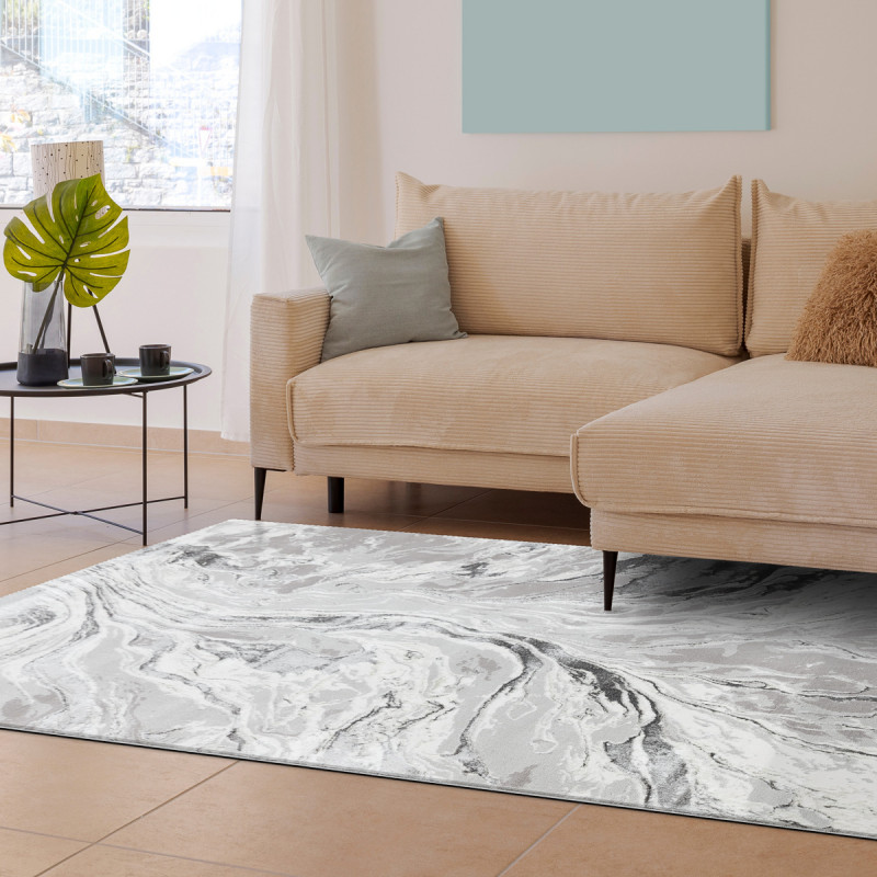 Bílošedý kusový koberec Piazzo 12263 910 z pevnějšího polypropylenu heatset je tou pravou volbou do moderního interiéru. Tento koberec s abstraktním vzorem vyniká svou kvalitou, která je zaručena nejen díky kvalitnímu materiálu, ale také díky extra vysoké hustotě vlasu, která přesahuje 1 000 000 vpichů na m2!