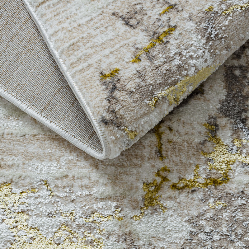 Kusový koberec Bliss Z162AZ173 připomíná rozvířenou zlatou tekutinu či mramorovou kresbu zachycenou na plátně, působí jako skutečný obraz položený na podlahu. Jemná kombinace béžových, krémových a zlatavých odstínů vytváří fascinující abstraktní motiv, který se mění podle dopadu světla a okamžitě dodá interiéru punc luxusu. Vlas z kvalitního polyesteru má...