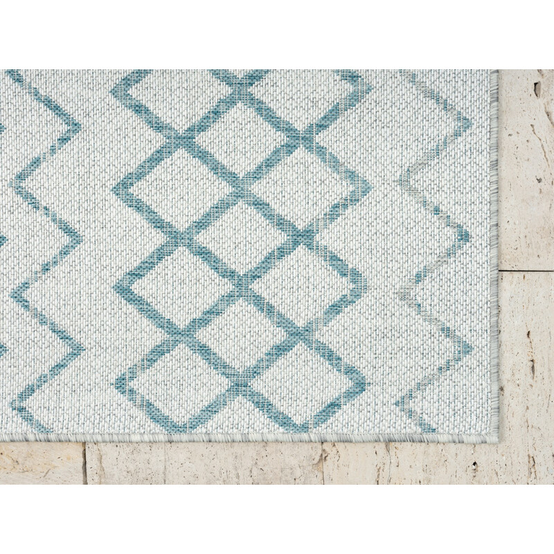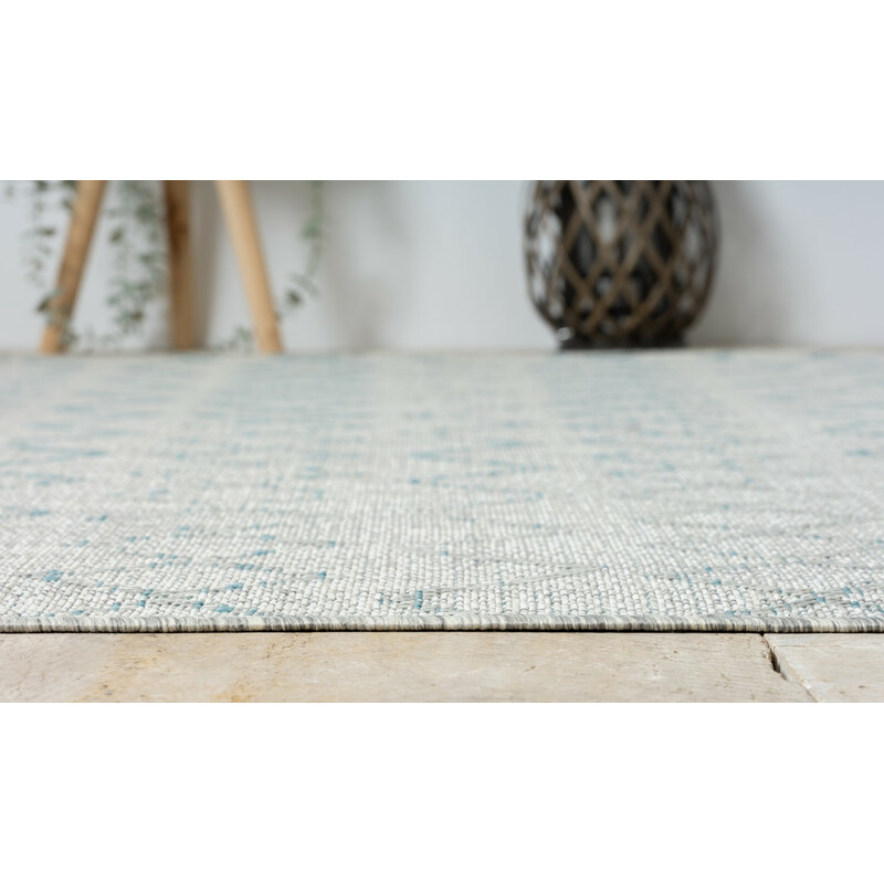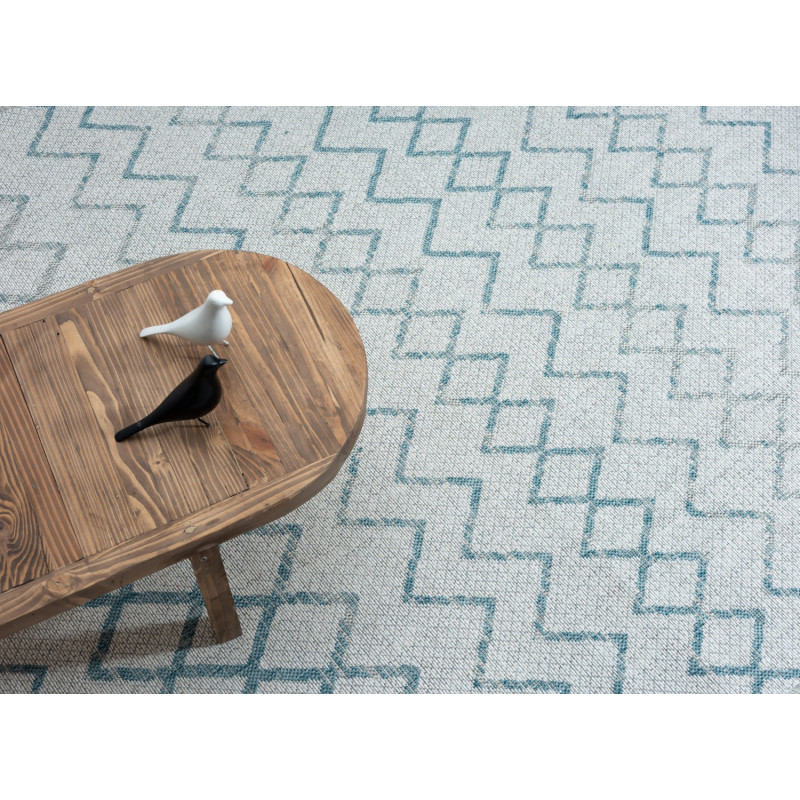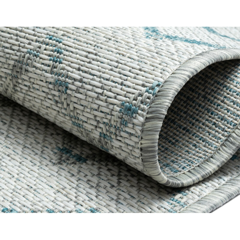 Kusový koberec Illusio v šedé barvě s modrými geometrickými tvary je vyrobený z polypropylenu. Hodí se do obýváku, ložnice i venkovních prostor, kam dodá moderní atmosféru. Díky bezvlasé struktuře se snadno udržuje i pomocí robotického vysavače. Obšití po celém obvodu zajišťuje, že dobře drží tvar a okraje se netřepí.