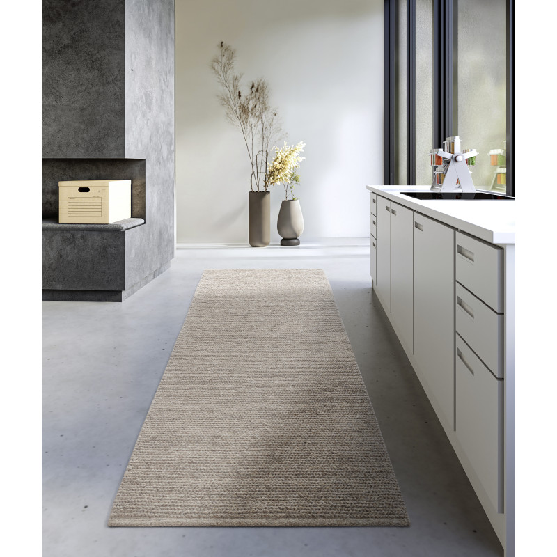 Béžový běhoun, který přinese do vašeho domova nádech elegance a tepla. Je vyroben z vysoce kvalitní vlny, která je měkká na dotek a zároveň odolná, takže je ideální pro každodenní použití. Díky rubové straně z bavlny a nižšímu smyčkovému vlasu je snadno udržovatelný a skvěle izoluje chlad, což přispívá k pohodlnému a útulnému prostředí.