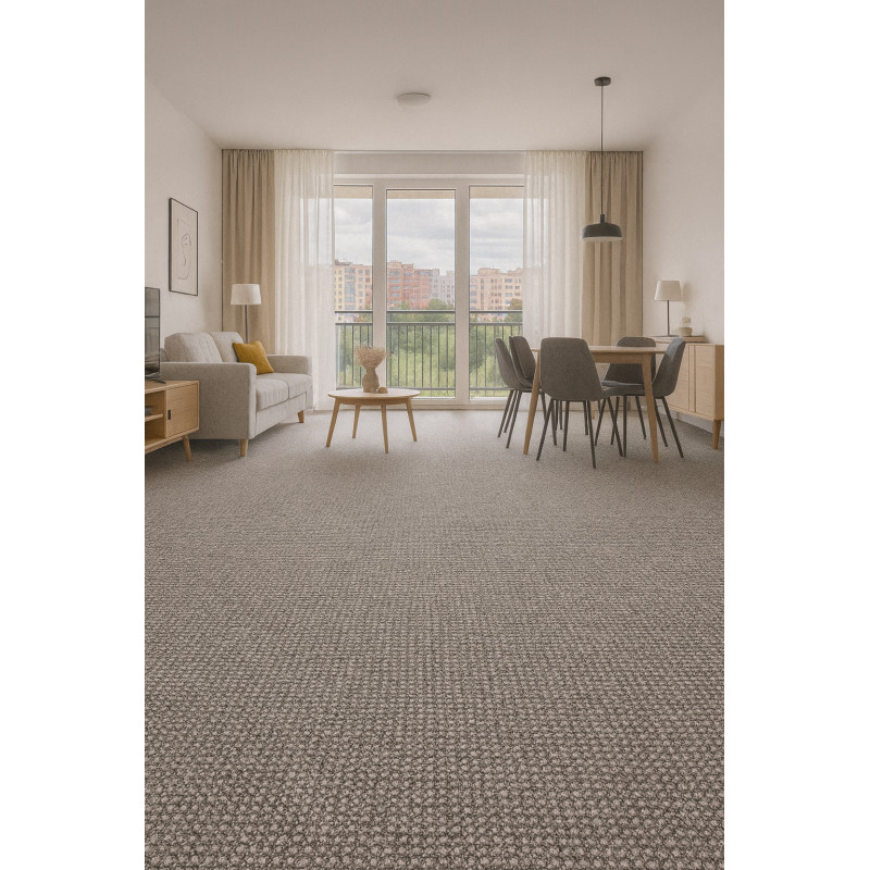 Šedobéžový metrážový koberec Texas se velmi hodí do bytových prostorů s vyšší zátěží. V těchto prostorech se využije jeho velká přednost "není na něm vidět nečistota" a velmi dobře se čistí a udržuje. Jedná se o koberec se smyčkovým vlasem typu berber, který lze poznat, střídáním velkých a malých smyček. Jeho využití v prostorech s vyšší zátěží umocňuje...