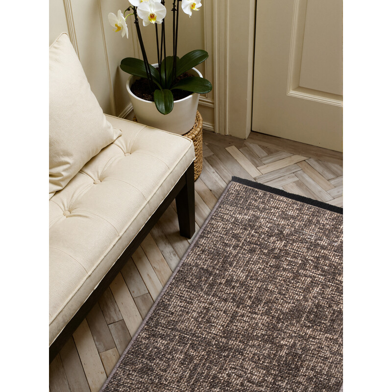 Hnědý běhoun s jemným béžovým nádechem působí jako měkký obláček, který se usadil přímo na podlaze. Jeho povrch s nízkým střiženým vlasem vytváří drobný mozaikový efekt, který se rozzáří při každém světelném záblesku. Na kratších stranách ho ozdobně rámují třásně, které mu dodávají veselou náladu, zatímco delší strany jsou úhledně obšité pro dokonale...