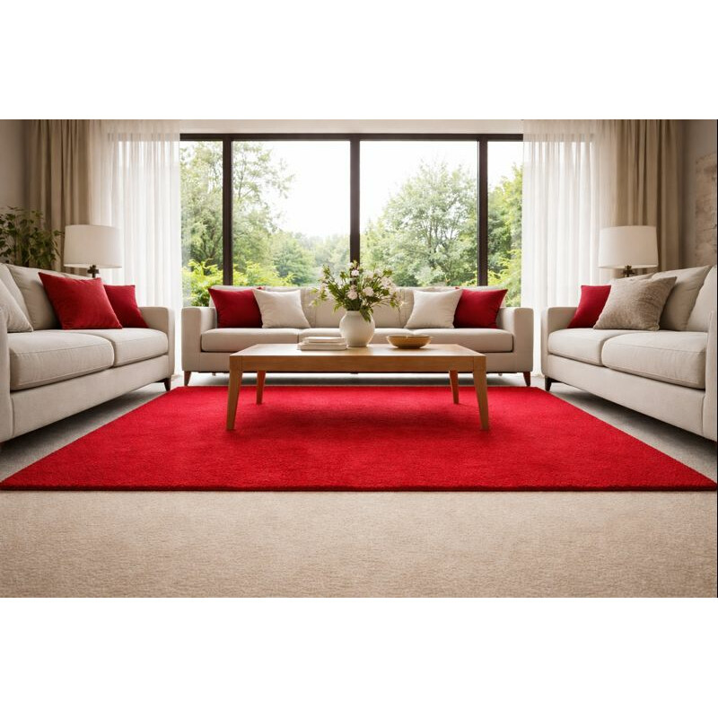 Výrazně červený koberec s orientálním motivem rozzáří každý obývací pokoj nebo ložnici. Je ozdoben různobarevnými květinovými vzory. Jeho výhodou je měkký a komfortní povrch, což zajišťuje středně vysoký střižený vlas z polypropylenu. Ten je navíc odolný a snadný na údržbu.