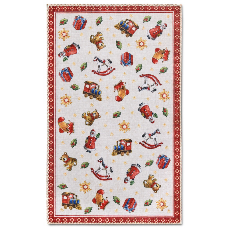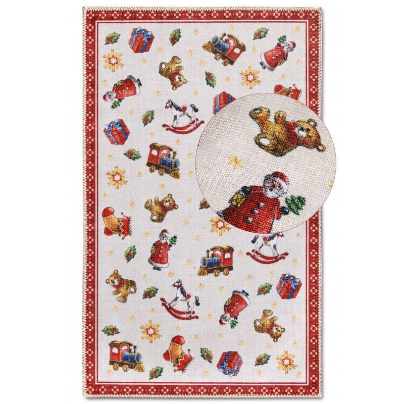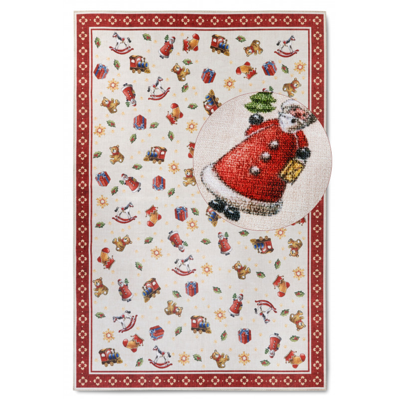 Tento červeno-bílý koberec zaujme svým nádherným vánočním motivem, který okamžitě vnese do vašeho interiéru kouzlo Vánoc. Jemné detaily a tradiční sváteční prvky vytvářejí útulnou atmosféru, která potěší každého milovníka tohoto magického období. Elegantní kombinace červené a bílé barvy je nadčasová a perfektně doplní zimní výzdobu. Díky nízkému profilu a...