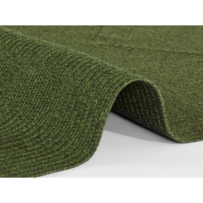 Povedený koberec se světle zeleným středem a tmavě zeleným obvodem. Má středně vysoký střižený vlas, který je měkčí a komfortnější než klasický smyčkový vlas. Vyrábí se z polypropylenového vlákna, a proto mezi jeho přednosti patří snadná údržba a odolnost.