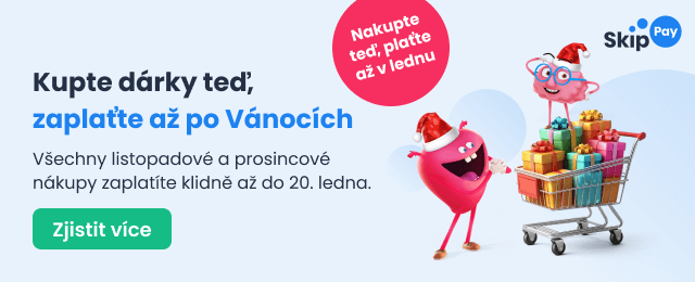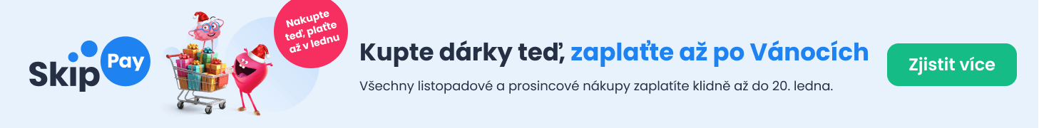 ZDARMA A BEZ NAVÝŠENÍ | Nákup na Třetinu (Skip Pay): Rozdělte si větší výdaje na tři části. Zboží si vyberete, objednáte a ihned zaplatíte kartou pouze třetinu z celkové ceny objednávky (min. 1000 Kč), zbylé dvě za 30 a 60 dní. Vše je zcela zdarma, bez navýšení a bez poplatků. Více zde. |
