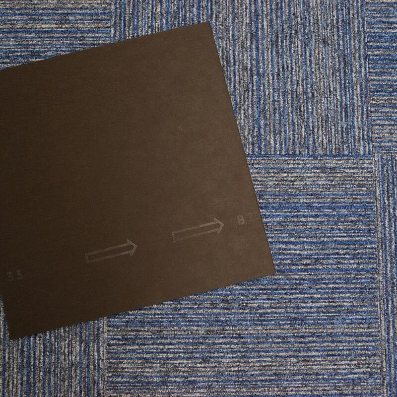Materiál podkladu kobercových čtverců je bitumen. Teplota při pokládce musí být mezi 10 °C a 25 °C a relativní vlhkost vzduchu cca 60 %. Čtverce je třeba vyjmout z krabic a nechat volně ležet na podlaze po dobu 24 hodin před vlastní pokládkou, aby se přizpůsobily teplotě daného prostoru, a tím se zaručí jejich pozdější stálost.