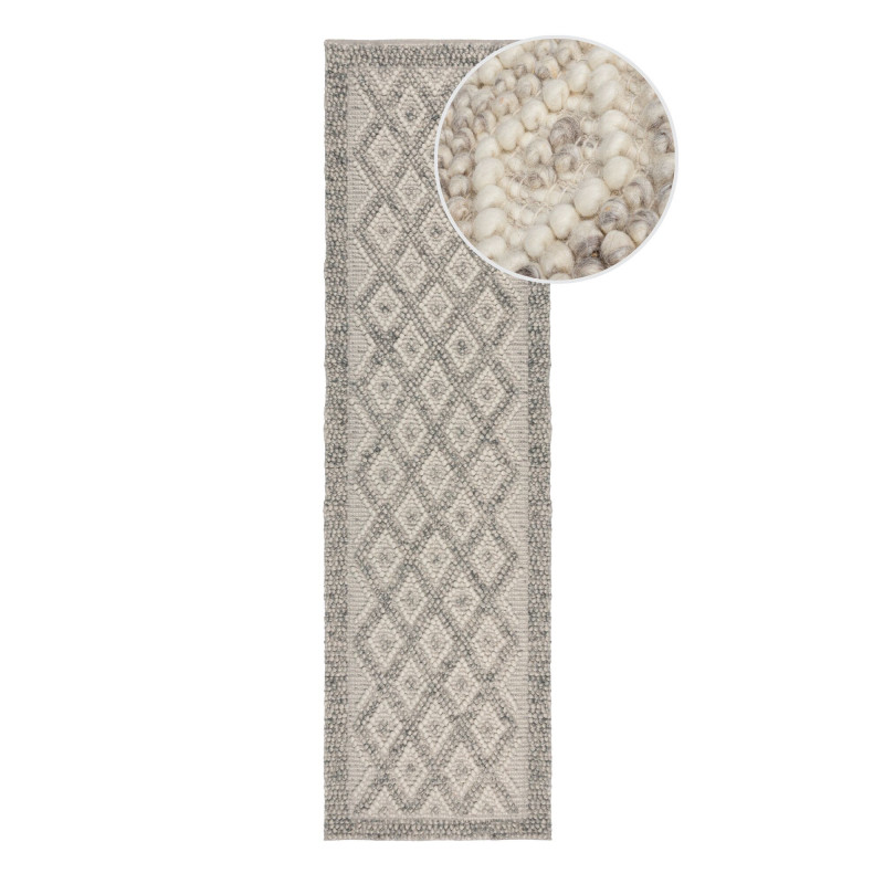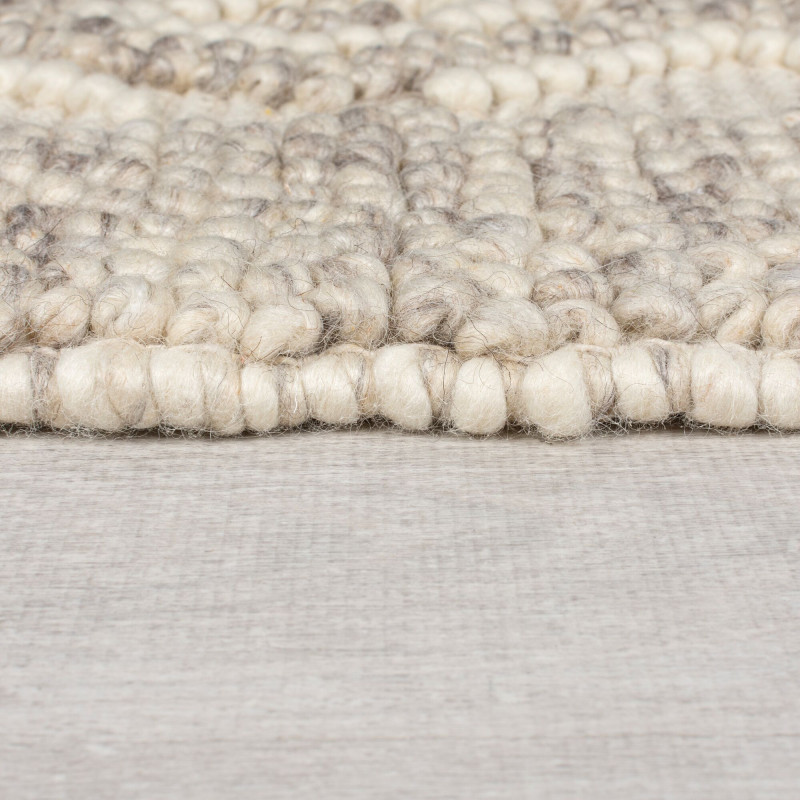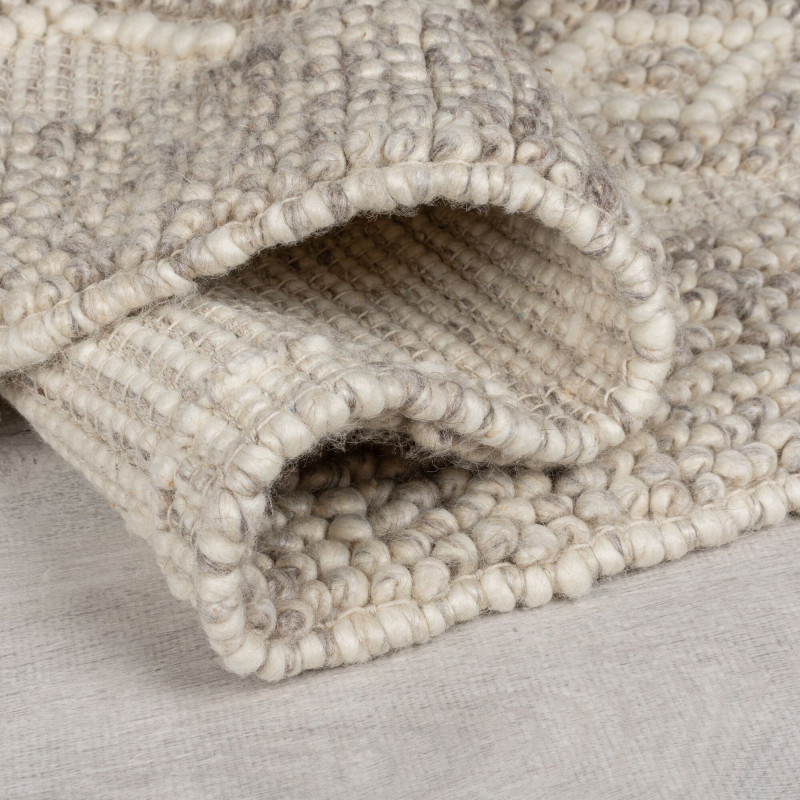 Vlna je přírodní materiál, který se získává z ovčí srsti. Má řadu vlastností, které ji činí vhodnou pro výrobu koberců. Tento koberec je teplý, měkký, odolný, pružný a snadno se čistí. Také dobře izoluje zvuk a teplo a má antibakteriální účinky. Jedná se o prémiový kousek, protože vlna dokáže regulovat mikroklima – když je v místnosti příliš vlhko, vlhkost nasaje do sebe a pak ji postupně uvolňuje. Krátce po rozbalení může mít koberec tendenci mírně pouštět vlas, což je u vlny normální a trvá to pár dní, maximálně týdnů (v závislosti na intenzitě používání).