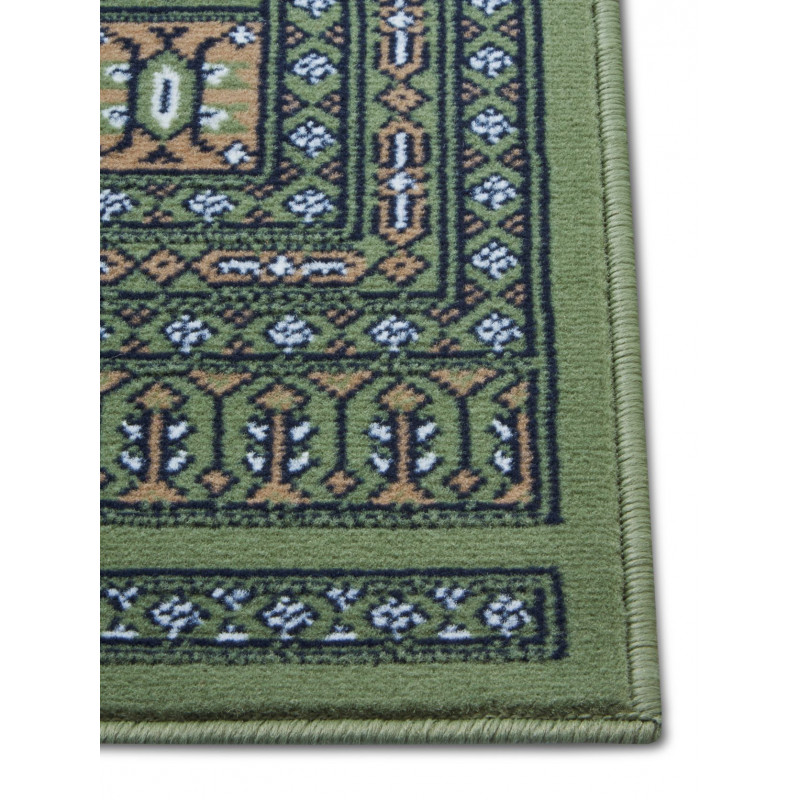 Tento koberec je obšitý po celém obvodu, a proto se může pyšnit několika praktickými vlastnostmi. V první řadě lemování zabraňuje třepení okrajů, což prodlužuje životnost tohoto kousku, zvyšuje bezpečnost a usnadňuje jeho údržbu. Zadruhé, díky obšití koberec vypadá dokončeně a upraveně. Hrany jsou čisté a dobře definované, a to mu dodává profesionální vzhled. V neposlední řadě koberec lépe přilne k povrchu, což přispívá k jeho stabilitě a zvyšuje komfort při chůzi.